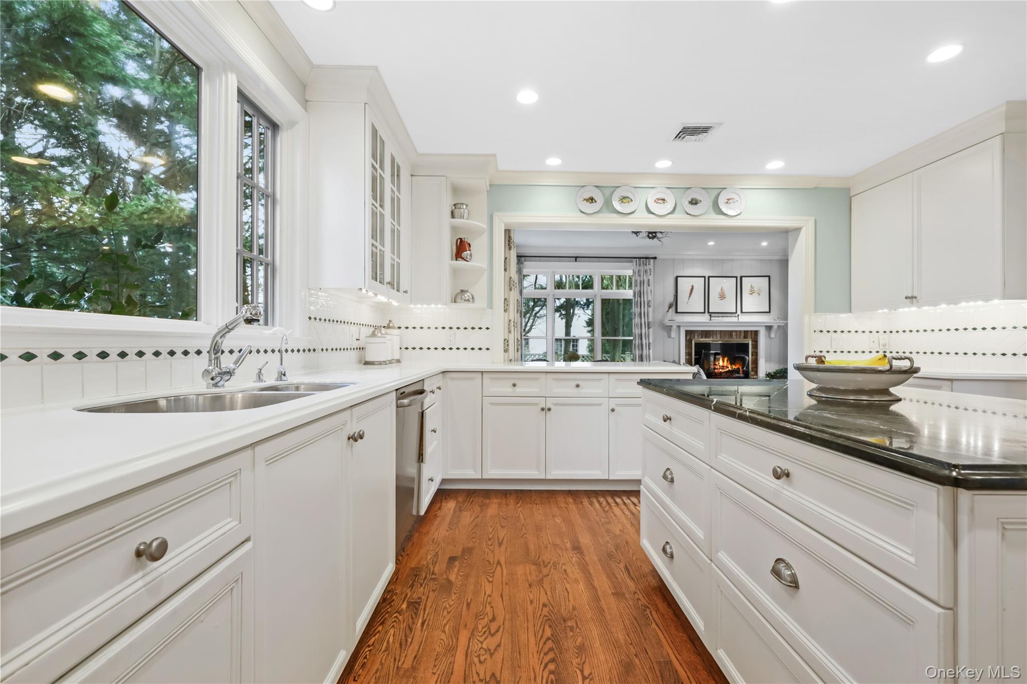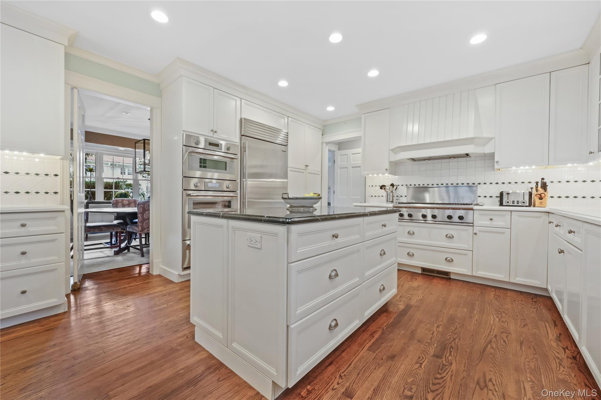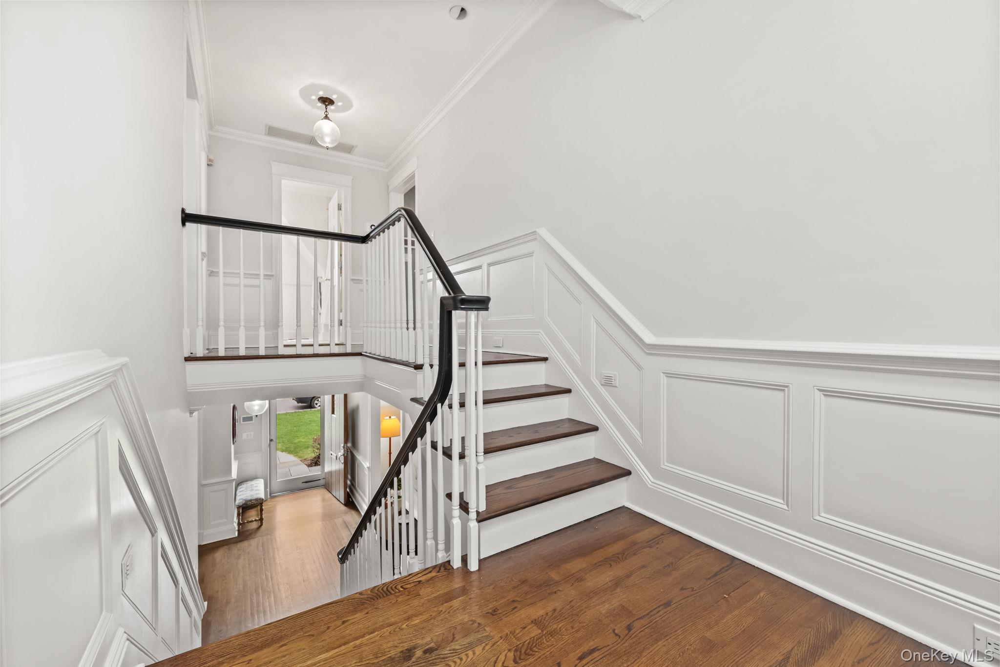 Situated in one of Bronxville Village's most coveted neighborhoods, 42 Sturgis combines modern living and convenience with the timeless charm of a 1920s English Tudor. Handsome curb appeal welcomes you to this light-filled home, with a gracious entrance hall that sets the tone. The home features a large living room with a wood-burning fireplace and an adjoining office/den with elegant oak woodwork. At the heart of the home is a spacious, updated kitchen with a center island and Peninsula, connecting seamlessly to a dining area and comfortable family room with a wood-burning fireplace and wet bar. From here, enjoy easy access to a private, expansive back terrace--perfect for entertaining and grilling--as well as a back and side yard ideal for a swing set or a game of catch. The first level is completed by a formal dining room, powder room, and mudroom area. Upstairs, the second level offers a large primary suite with a renovated marble bathroom (2022) featuring Ann Sacks tile and Kallista fixtures, along with a dressing room. Two additional bedrooms share a full bath, while a mezzanine bedroom with an en-suite bath completes this level. The newly redesigned lower level includes a recreation area, half bath, laundry room, gym space, and ample storage. Additional highlights include a two-car garage, recently repainted exterior (2020), new HVAC system (2019), and beautiful specimen plantings. With its modern amenities, elegant updates, and expansive outdoor spaces, 42 Sturgis is ready to welcome its next owner.
