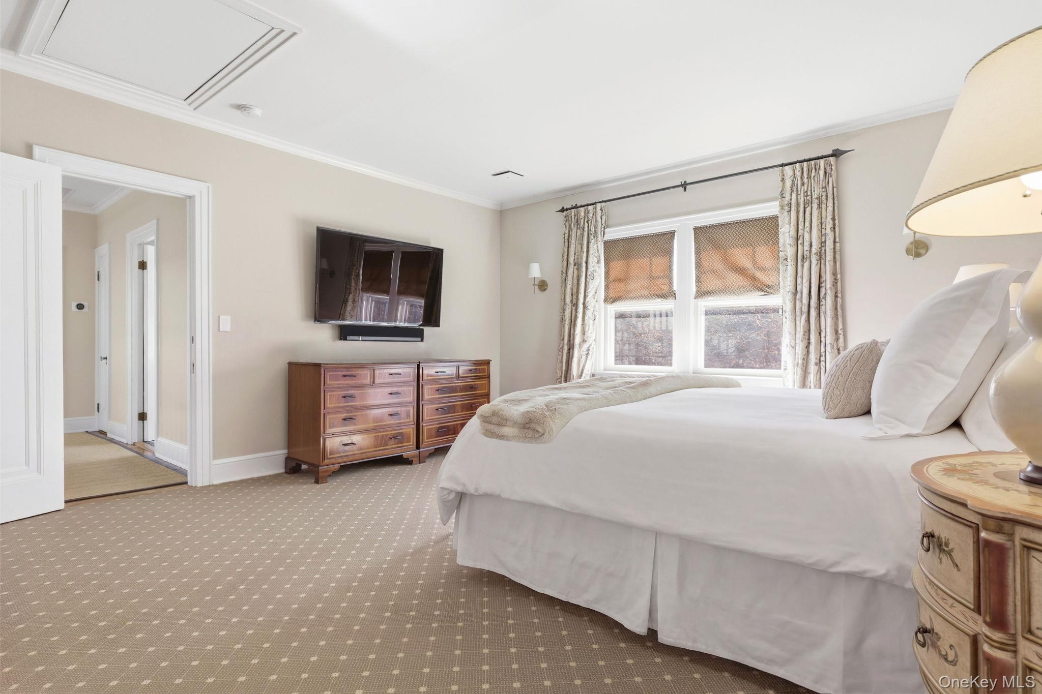 Numerous infrastructure upgrades elevate the property, including radiant heat in the kitchen, a Lutron smart lighting system, whole-home audio wiring (indoors and out), and a mesh Wi-Fi network. Designer touches such as Phillip Jeffries wall coverings and designer lighting fixtures enhance the home's sophisticated aesthetic.